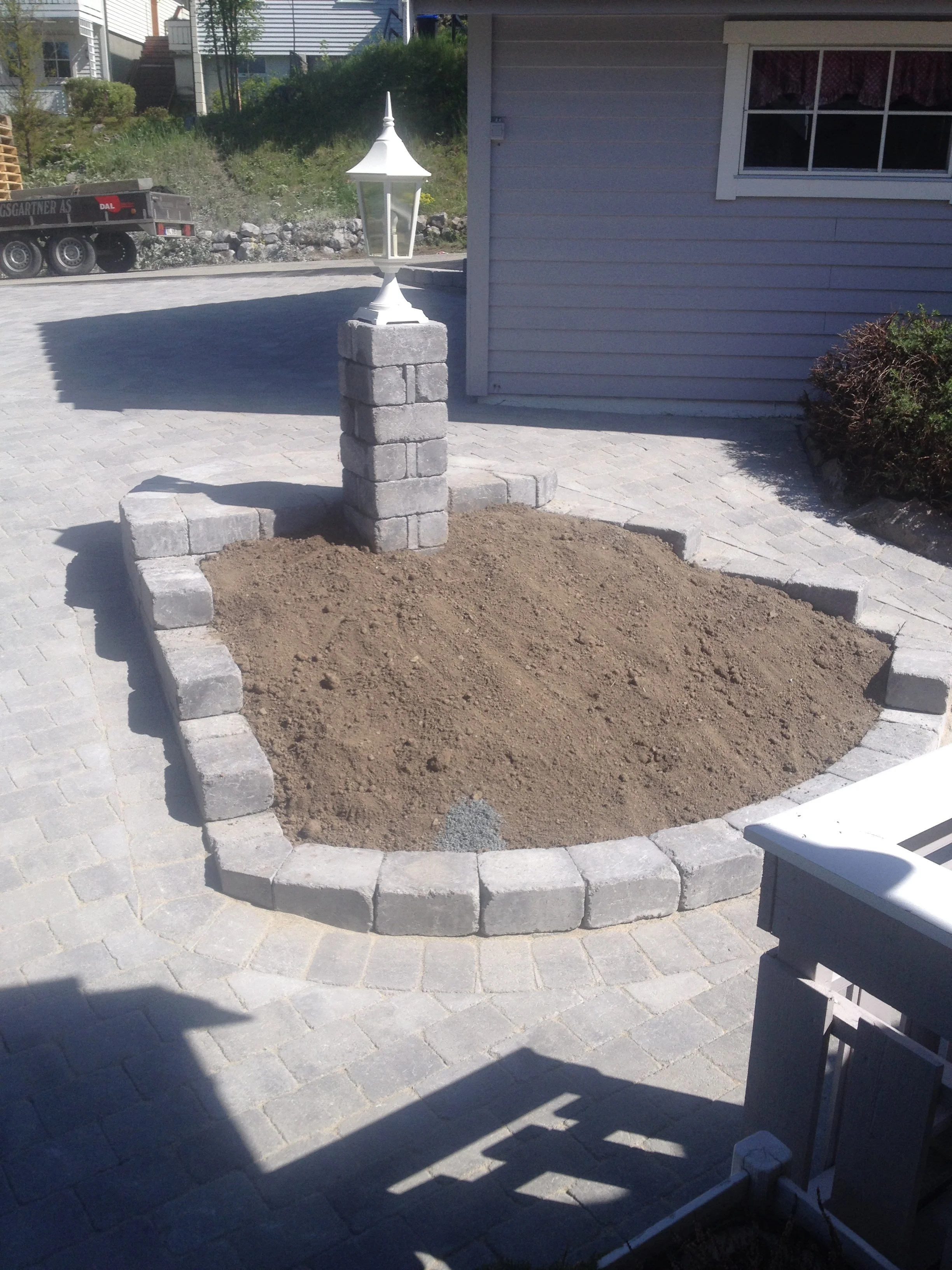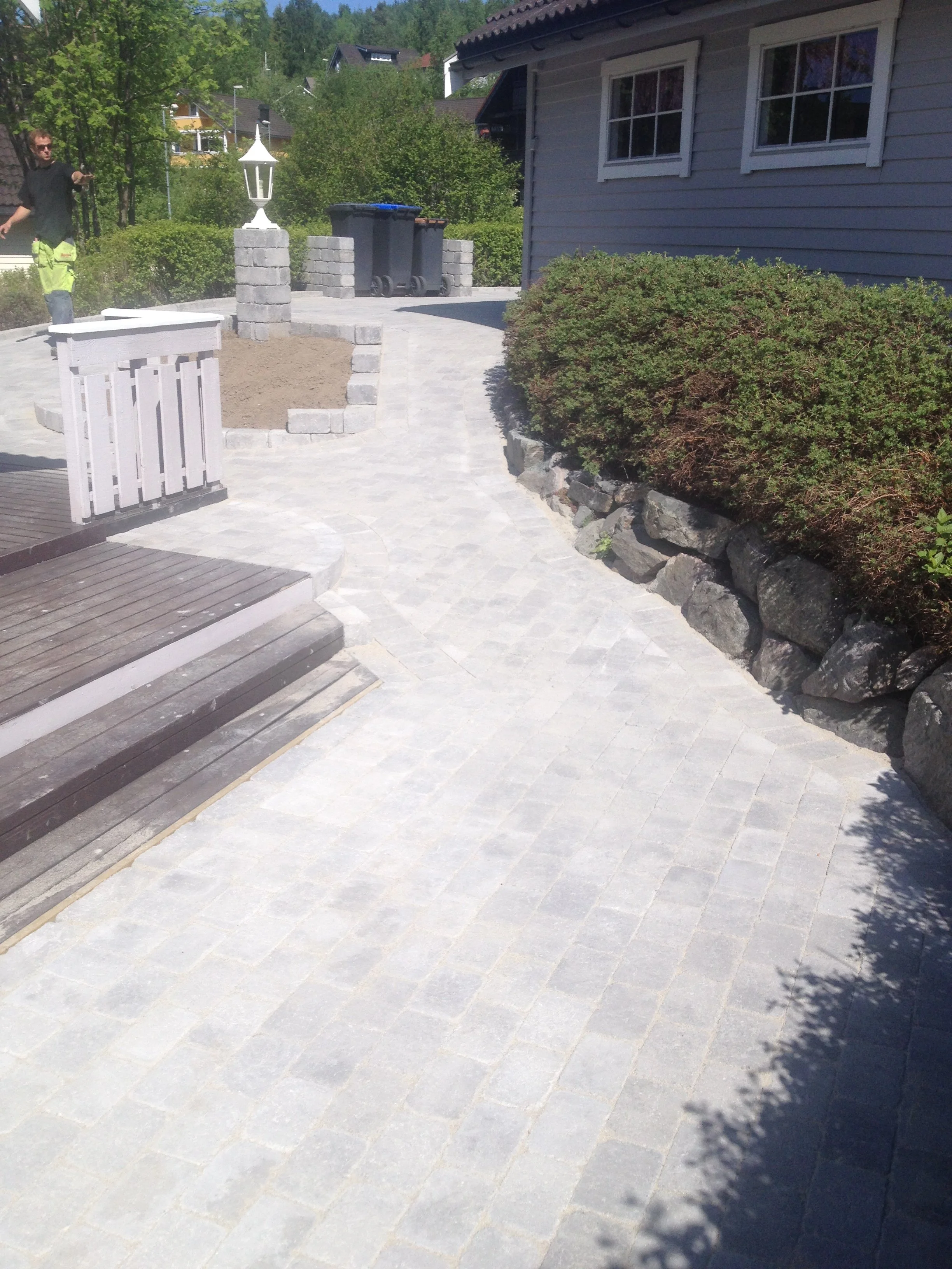 Vi tar også på oss store og små oppdrag for private. Her har vi gjort grunnarbeid, satt kantstein, lagt belegningsstein, støpt fundament og laget forskjellige detaljer i stein